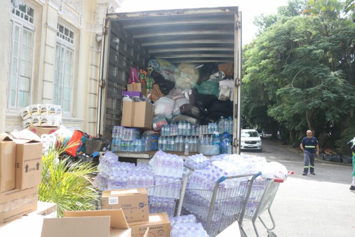 Foi com o caminhão lotado de doações que o motorista deixou o Fundo Social de Solidariedade de Santos (FSS), na tarde desta sexta-feira (10), para que itens arrecadados pelos santistas cheguem às regiões mais afetadas pelas chuvas no Rio Grande do Sul.