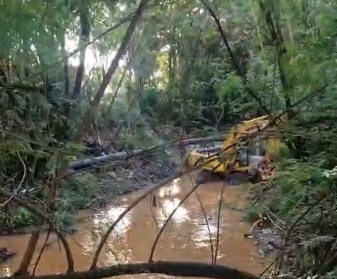 O rompimento foi provocado por uma chuva de forte intensidade que causou uma enxurrada no córrego. A enxurrada forçou e derrubou a estrutura original de concreto que dava sustentação à passagem da tubulação.
