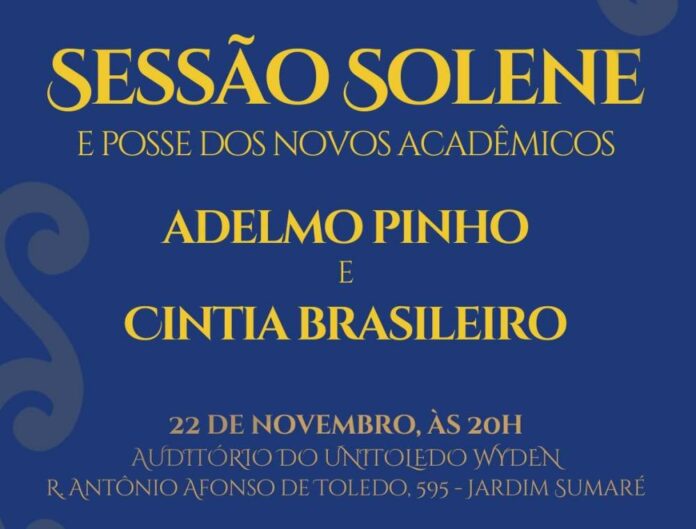 Os novos acadêmicos empossados serão Adelmo Pinho e Cintia Brasileiro. Promotor de Justiça, Adelmo possui duas obras publicadas, incluindo uma coletânea de crônicas e poesias lançada recentemente. Já Cintia, especialista em Língua e Literatura e formada em Comunicação Social, também é autora de livros e destacou-se na literatura regional. Ambos foram indicados pelo acadêmico Arnon Gomes e eleitos por maioria de votos.