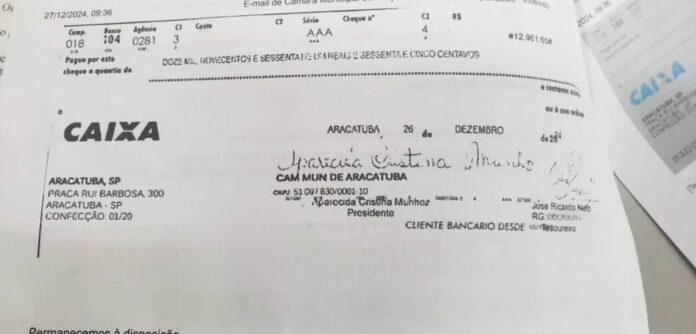 A Câmara Municipal de Araçatuba (SP) foi vítima de uma fraude envolvendo a falsificação de um cheque no valor de R$ 12.961,65, compensado pela Caixa Econômica Federal. O cheque, atribuído à conta do Legislativo, foi depositado por uma mulher com histórico de processos por estelionato. A irregularidade foi descoberta na sexta-feira (27) e, no mesmo dia, o banco ressarciu o valor à Câmara.