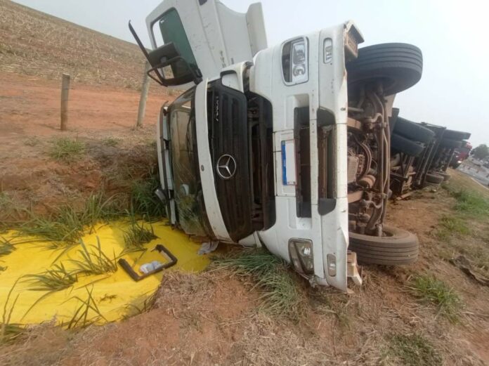 Um caminhão utilizado para o transporte de óleo vegetal tombou na manhã desta sexta-feira (4), na rodovia Jorge Malluly Neto (SP-463), em Araçatuba. O acidente ocorreu no quilômetro 38, na pista sul, sentido Bilac. O veículo saiu da pista e tombou em uma área além do acostamento.