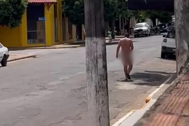 Um homem foi flagrado andando completamente nu pela Avenida Washington Luiz, bairro Jardim Brasil, em Guararapes (SP), na tarde deste sábado (25). A cena inusitada chamou a atenção de quem passava pelo local e foi registrada em vídeo por um morador, que compartilhou as imagens nas redes sociais e em grupos de aplicativos de mensagens.
