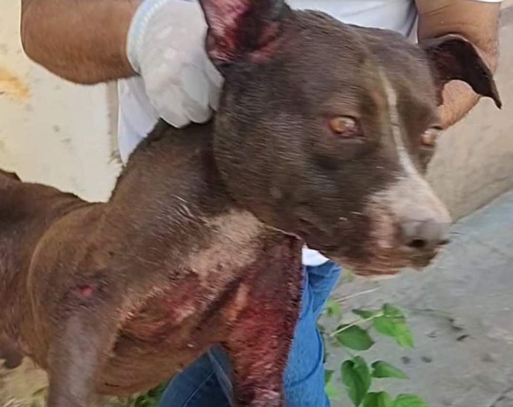 Os quatro cães foram resgatados, mas um deles, da raça Pit Bull, não resistiu e faleceu devido a “hipotensão relacionada a hemorragia”, conforme relatório veterinário.
