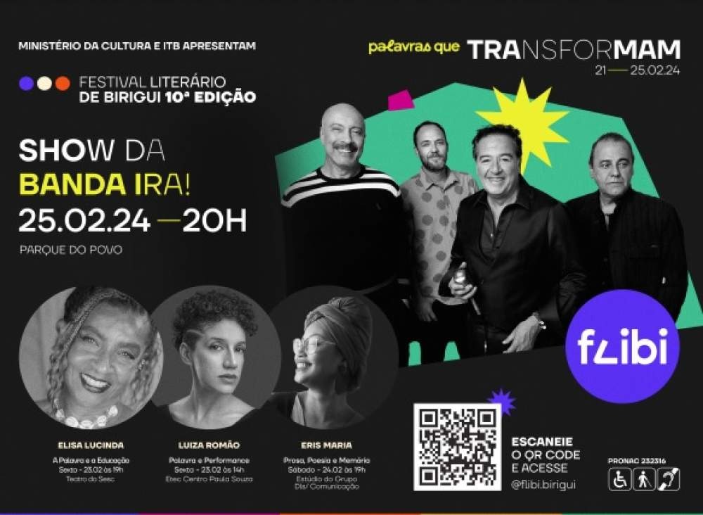 A programação completa do festival está disponível no Instagram @flibi.birigui. Este ano, o destaque será o evento no Parque do Povo, no domingo (25), a partir das 17h, com espetáculos infantis, show da banda Tropicadelia, intervenções artísticas e, para encerrar em grande estilo, a apresentação da Banda Ira! às 20h30.