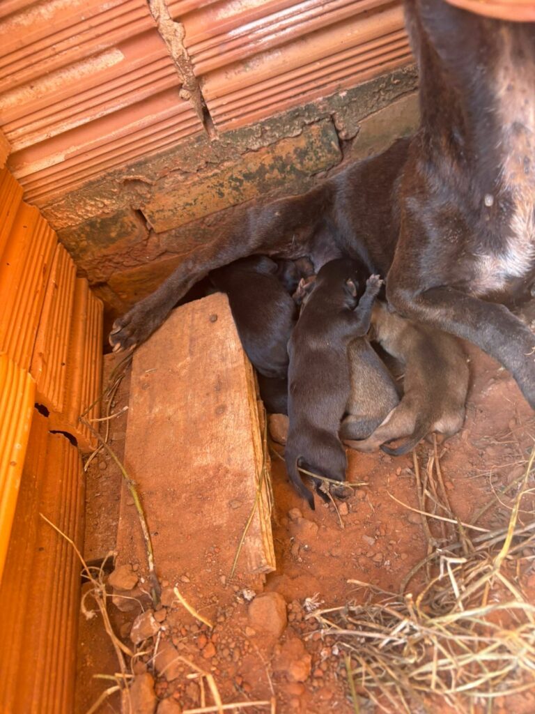 Foram localizados uma cadela da raça pitbull, uma cadela sem raça definida e seis filhotes — sendo um deles já em óbito. Os animais não tinham acesso à água potável e a alimentação disponível era inadequada para consumo.
