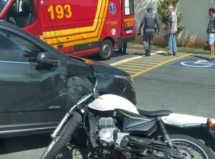 Um motociclista sofreu laceração no nariz e em parte da boca após colidir com um carro na tarde desta sexta-feira (12), na rua Marcílio Dias, em Araçatuba (SP). A identidade da vítima não foi divulgada até o momento e ainda não há muitas informações sobre como ocorreu o acidente.