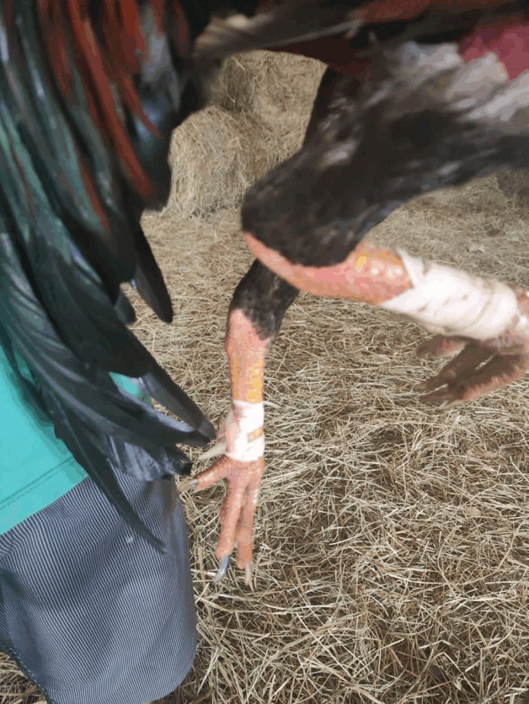 Em um dos viveiros, os agentes localizaram um galo com ferimentos recentes, como hematomas no pescoço, dorso e cabeça, compatíveis com os combates. O animal estava equipado com bico e espora de metal, artefatos utilizados para potencializar os ferimentos nos adversários.