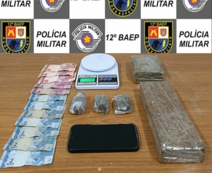 Durante a abordagem, ele confessou vender porções de 25 gramas da droga por R$ 80 cada. Em vistoria na casa, os policiais encontraram um tijolo de maconha no congelador da geladeira, outro tijolo no armário da cozinha, além de uma balança de precisão. A droga totalizou 1.546,82 gramas.
