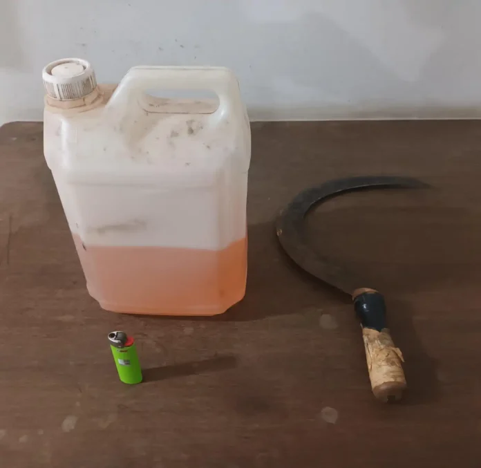 Os policiais apreenderam a foice, o galão de gasolina e o isqueiro | Foto: Divulgação