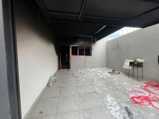 A residência, que tem quatro cômodos, teve a sala e a cozinha totalmente queimadas. A área foi preservada pela Polícia Militar para a realização da perícia