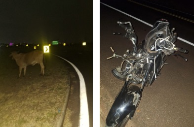 Um motociclista por aplicativo de 38 anos ficou ferido na madrugada desta segunda-feira (6), após colidir a motocicleta que conduzia com bovinos soltos na Rodovia Senador Teotônio Vilela, mais conhecida como Guatambu, no limite dos municípios de Araçatuba (SP) e Birigui (SP).
