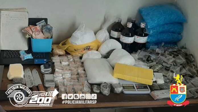 Os policiais então procederam à busca na residência mencionada, onde localizaram uma quantidade significativa de drogas, além de anotações relacionadas ao tráfico de entorpecentes e equipamentos utilizados para o preparo e armazenamento das substâncias ilícitas.