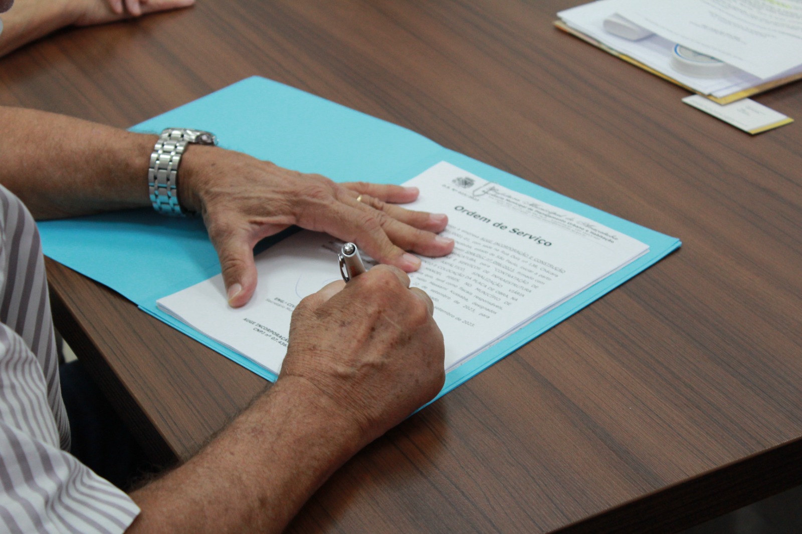 O prefeito Dilador Borges assinou a ordem de serviço, na presença da vice-prefeita Edna Flor, do chefe de gabinete e do secretário de Governo. Além do assessor executivo da Secretaria Municipal de Planejamento Urbano e Habitação, Claudiocir Fernandes e do representante da empresa.