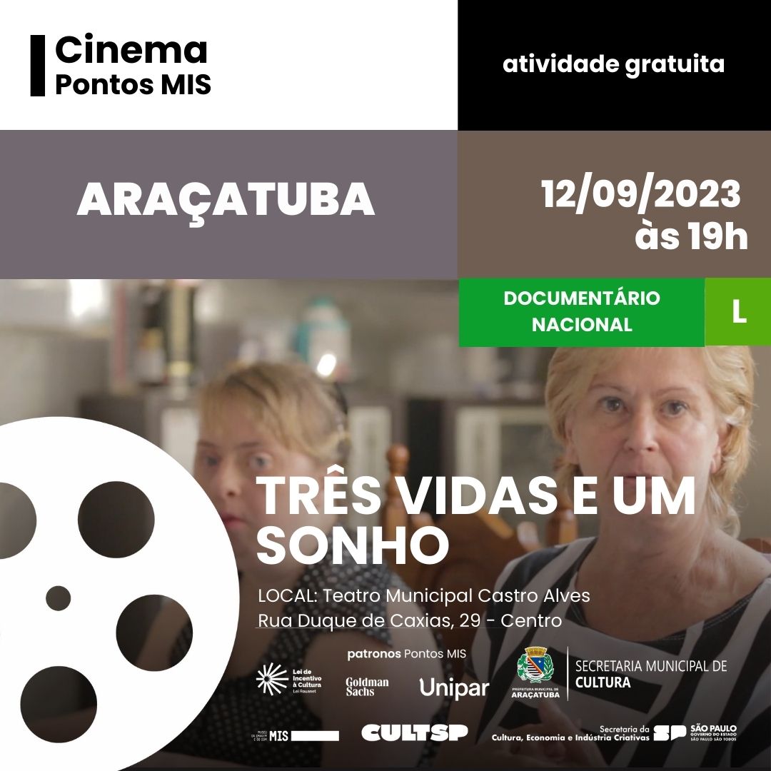 A Secretaria Municipal de Cultura de Araçatuba, em parceria com o programa estadual Pontos MIS, vai exibir os filmes “Colegas” e “Três vidas e um sonho”, no Teatro Municipal Castro Alves, no mês de setembro.