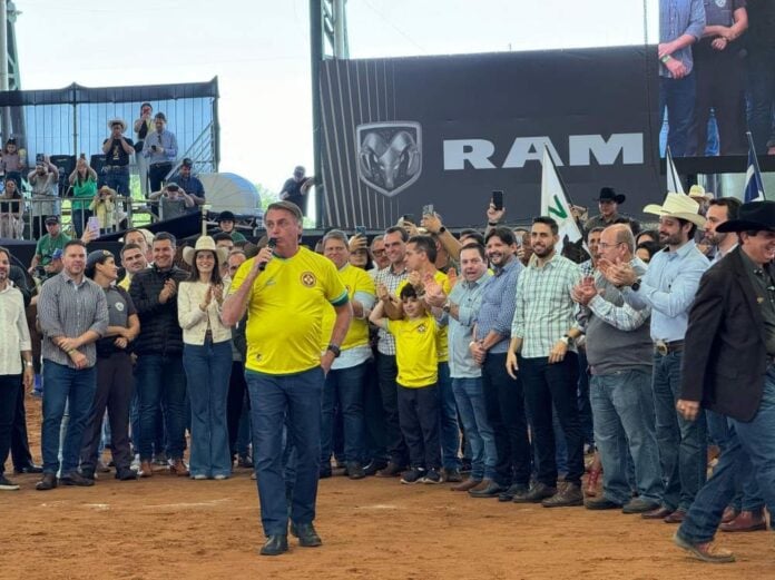 Bolsonaro fez sua entrada na arena montado em um cavalo da raça Quarto de Milha, recebendo aclamação do público presente ao som de gritos de ‘mito’ e ‘Deus, Pátria e família’. Ele esteve acompanhado do governador Tarcísio de Freitas, do pré-candidato a prefeito de Araçatuba, Lucas Zanatta (PL), e do secretário estadual de Agricultura, Guilherme Piai. Todos estavam uniformizados com a camiseta do time AEA (Associação Esportiva Araçatuba).