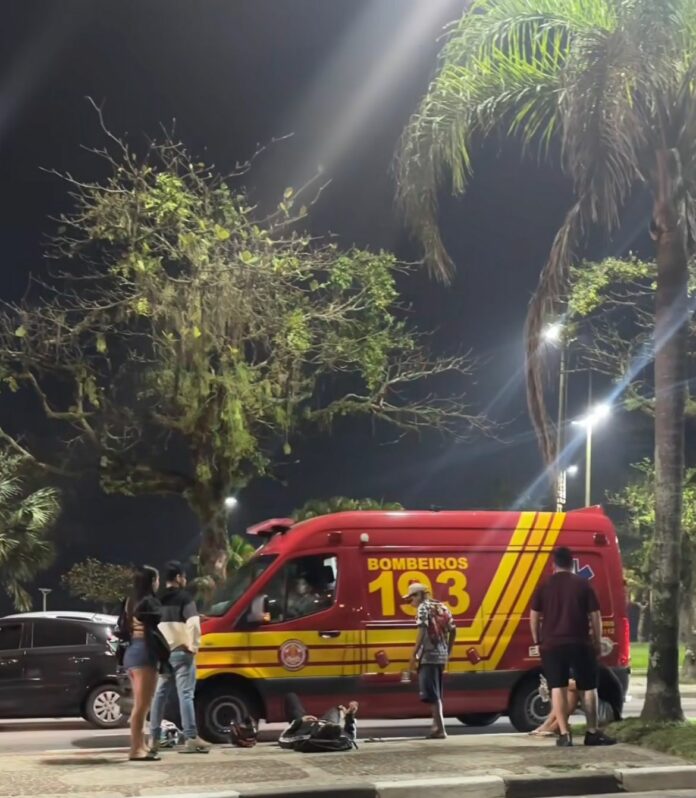 Um carro e uma motocicleta se envolveram em um acidente de trânsito na noite de sábado (14), na Avenida Bartolomeu de Gusmão, no bairro Boqueirão, em Santos, litoral paulista, que resultou em duas pessoas feridas.