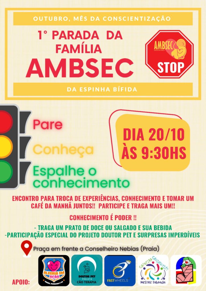 No próximo domingo (20), a AMBSEC (Associação de Mielo da Baixada Santista Encurtando Caminhos) realizará a “1ª Parada da Família AMBSEC”, um evento especial para conscientizar e apoiar as famílias que convivem com espinha bífida na região.