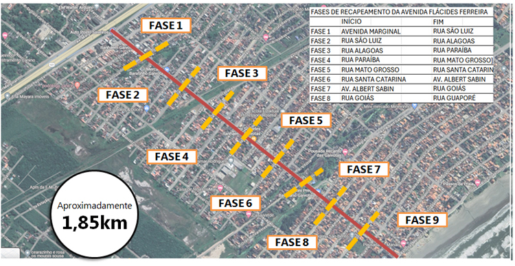 O local será contemplado com serviços fresagem (remoção do pavimento desgastado), recomposição da base e recapeamento da via com novo asfalto, além de moderna sinalização viária, recuperação de guias, sarjetas e drenagem em pontos desgastados da via, totalizando 1,85 Km de obras.