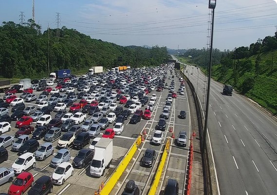 Segundo a Ecovias, concessionária responsável, na Rodovia dos Imigrantes, sentido litoral, há lentidão do km 27 ao km 32 e do km 40 ao km 53. Já na Cônego Domenico Rangoni, sentido Guarujá, do km 270 ao km 263. Em todos os trechos, a lentidão ocorre por alto fluxo de veículos.