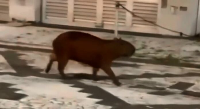 A cidade de Guarujá, litoral paulista, recebeu uma vizinha inesperada no fim de semana. Uma capivara foi flagrada andando pelas ruas, no bairro Pitangueiras.
