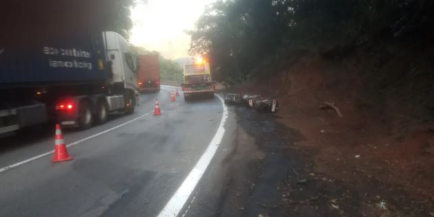 O trecho de serra da Rodovia Anchieta foi interditado, sendo necessário inverter. Por conta do acidente, houve interdição completa do trecho, já que não há acostamento. A pista sul da Anchieta teve o fluxo invertido, enquanto a pista norte segue interditada. Todos os tambores foram recolhidos por volta das 10h15.