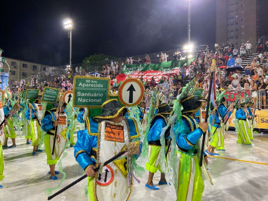 Os peregrinos foram homenageados, e uma mão em posição de oração em um dos carros alegóricos da Grêmio Recreativo Cultural Escola de Samba X-9 representaram o principal tema da noite para os xisnoveanos: a fé em Nossa Senhora.