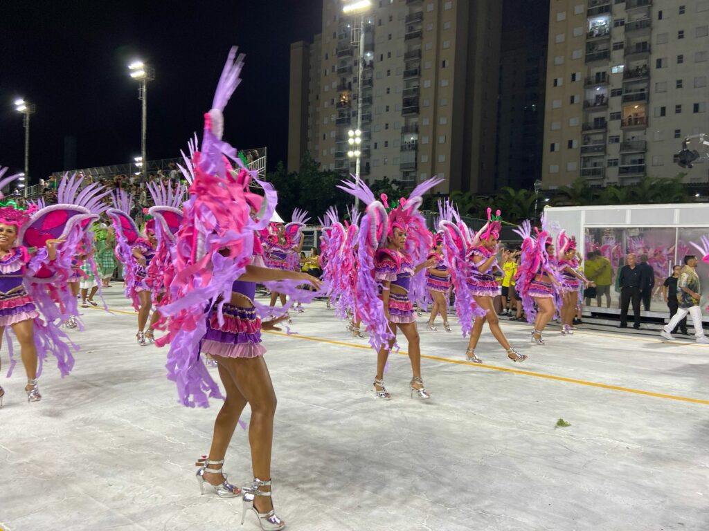 As cores verde e branco representaram este grêmio recreativo que representa a cidade de Guarujá no desfile de Santos.