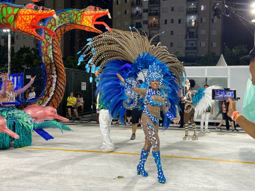 A bateria “Feitiço da Ilha”, comandada pelo Mestre Pepeu brilhou enquanto a rainha de bateria Janaína Paiva mostrou o amor pela escola.