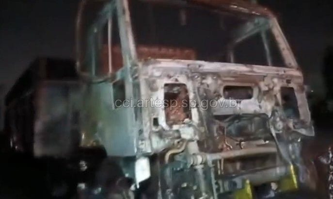 Segundo a corporação, o fogo iniciou na carreta e, em seguida, passou para o cavalo. Com o apoio do caminhão PIPA e da equipe da Ecovias, combateram incêndio que consumiu todo o cavalo mecânico.