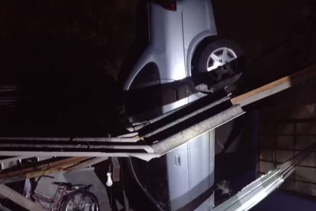 Um carro caiu dentro de uma casa após o motorista perder o controle do veículo. O caso improvável aconteceu na noite deste domingo (7), por volta das 20h.