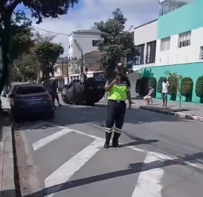 Um homem ficou ferido após a colisão de dois carros seguido de um capotamento em Santos. O acidente aconteceu entre as ruas Ministro João Mendes e a Rua Álvaro Alvim, no bairro do Embaré.
