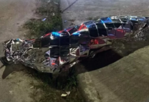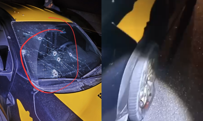 O carro da escolta armada foi fuzilado, como mostram as imagens, com cerca de 20 tiros cujo calibre 5.56 apontam para um Fuzil T4, uma arma de alta performance.