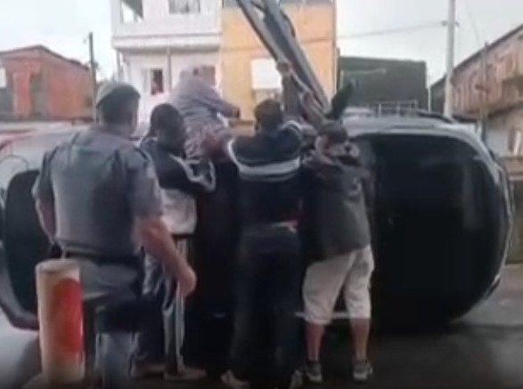 Um carro se envolveu em um acidente e tombou na subida do viaduto das Nações Unidas, em São Vicente. A ocorrência deixou uma vítima que recusou atendimento e foi retirada do carro por populares na presença da Polícia Militar.