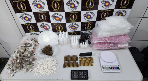 Ainda segundo a pasta, a perícia foi acionada e o caso registrado como tráfico de drogas e posse ou porte ilegal de arma de fogo de uso restrito na Delegacia do Guarujá.