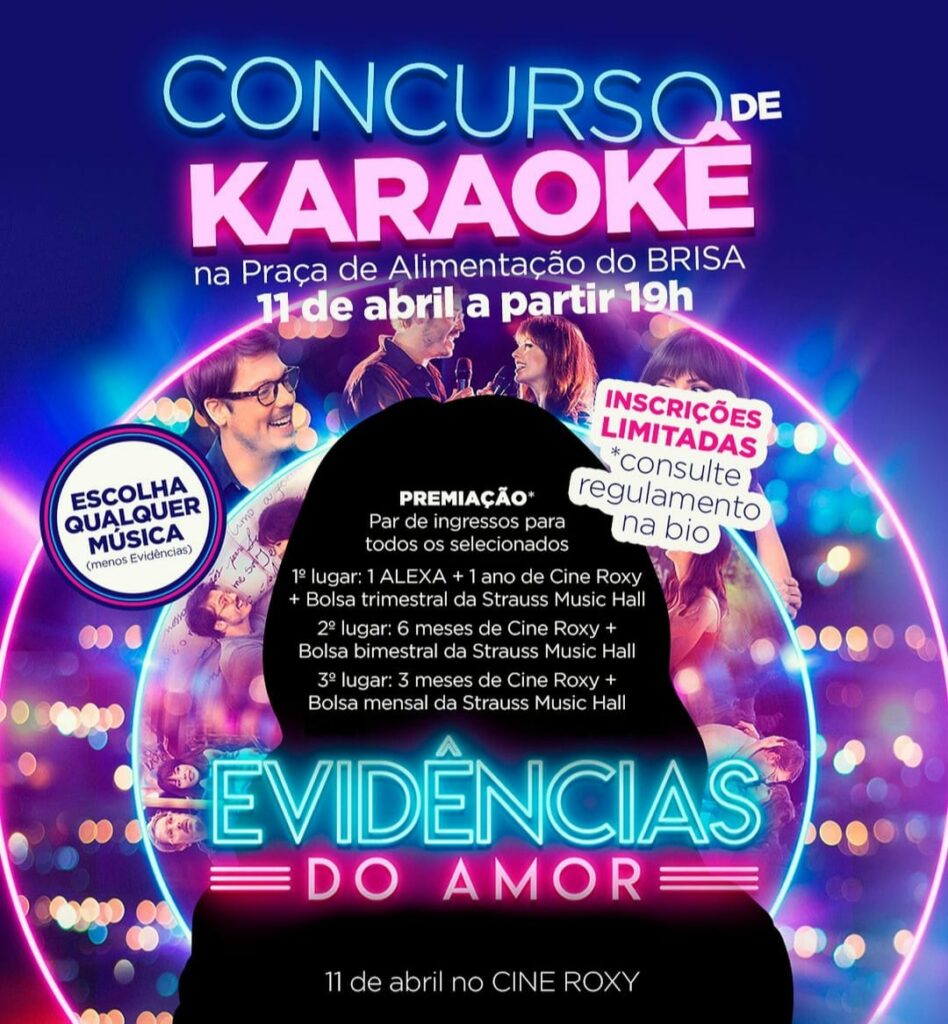 O Cine Roxy, em parceria com o Brisamar Shopping, tem o prazer de anunciar o concurso de karaokê como parte das comemorações de seus 90 anos de história. O evento será realizado na Praça de Alimentação do Brisamar Shopping, localizado na Rua Frei Gaspar, 365, Centro, São Vicente, em 11 de abril de 2024, às 19h.