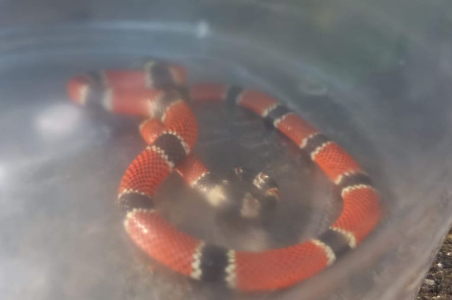 Uma cobra coral verdadeira (Micrutus altirostris) foi resgatada pela Guarda Civil Ambiental (GCM) de São Vicente, neste domingo (23). Ela foi encontrada em um quintal de uma casa, na Avenida Newton Prado, no Morro dos Barbosas. De acordo com a Prefeitura de São Vicente, o animal venenoso estava ativo e não apresentava nenhuma lesão aparente.