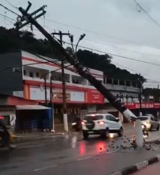 A colisão de um caminhão com um poste da rede de média tensão de energia na Avenida Lydio Martins Corrêa, no Guarujá, deixou milhares de moradores sem luz. Serviço foi normalizado quase 9h após a ocorrência.