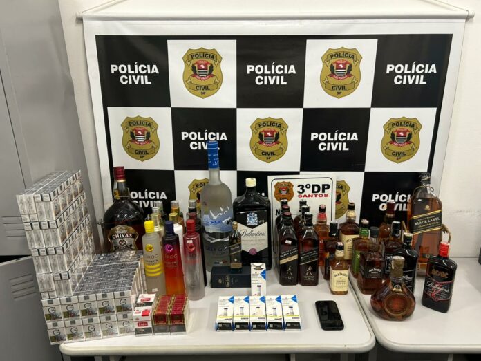 A ação aconteceu na tarde de sexta-feira (1º) por agentes do 3º Distrito Policial de Santos, durante investigação de uma denúncia anônima que indicava que o estabelecimento comercial situado na Avenida dos Caiçaras, bairro Jardim Boa Esperança, estaria sendo utilizado para armazenamento e comercialização de bebidas alcoólicas falsificadas, cigarros de origem estrangeira sem documentação fiscal e medicamentos de uso controlado, sem prescrição médica.