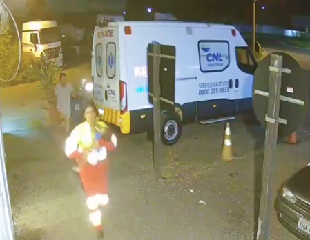 Por volta das 05h34, o carro da família para atrás de uma ambulância na base. Uma socorrista sai imediatamente, vai até o veículo e retira a criança desmaiada, após um quadro de dificuldade respiratória, crise convulsiva e engasgamento.