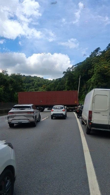 Segundo informações da Ecovias Imigrantes, concessionária responsável pelo trecho, o condutor da Carreta parou pelo acostamento devido uma pane no sistema de freio, mas no momento de efetuar o bloqueio físico com calços na roda, a carreta desceu, atravessando as três faixas de rolamento e colidindo com a mureta de concreto do canteiro central.