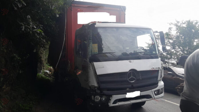 Com isso, uma carreta Mercedes Benz que vinha logo atrás, sem tempo hábil para frear ou desviar, acabou colidindo na traseira da Scania.