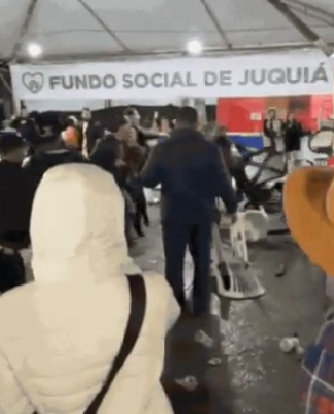 Vídeos publicados nas redes sociais e que o TH+ portal teve acesso mostram pessoas se empurrando e dando socos uns nos outros, além de cadeiras arremessadas. Confira: