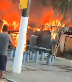 Um incêndio de grandes proporções atingiu seis casas de madeira na tarde desta quinta-feira (23), na comunidade do Mangue Seco, na Zona Noroeste de Santos. Uma pessoa ficou ferida.