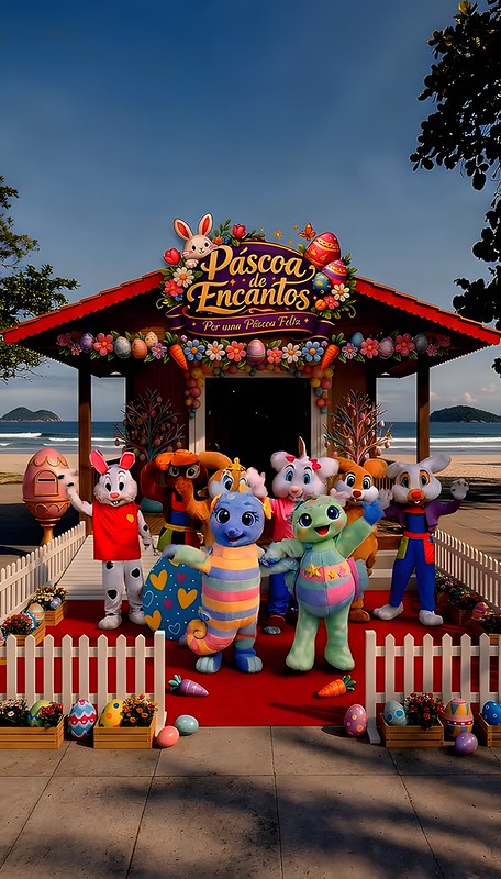 A Vila de Páscoa, inaugurada no último dia 28, na Praça das Bandeiras, na orla da Praia de Pitangueiras, em Guarujá, animará o público até o final de abril na cidade. O espaço contará com decoração temática, iluminação especial, personagens e programação cultural voltada para toda a família, com o apoio da Secretaria Municipal de Cultura (Secult).