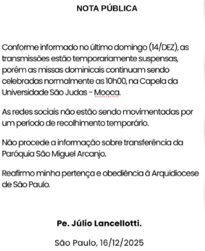 O cardeal arcebispo Dom Odilio, da Arquidiocese de São Paulo, decidiu proibir a transmissão de missas do padre Júlio Lancellotti nas redes sociais e também as atividades do padre nas redes. A decisão foi anunciada no último domingo, pelo próprio sacerdote, durante uma celebração que era transmitida por canais como a Rede TVT, o portal ICL e o YouTube. terça-feira (16).