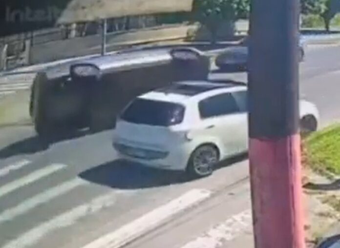 Imagens de câmeras de monitoramento que o TH+ portal teve acesso mostram o momento do acidente. O carro conduzido pelo idoso, modelo Versa, bate na traseira de um veículo modelo Punto e, logo em seguida, capota.