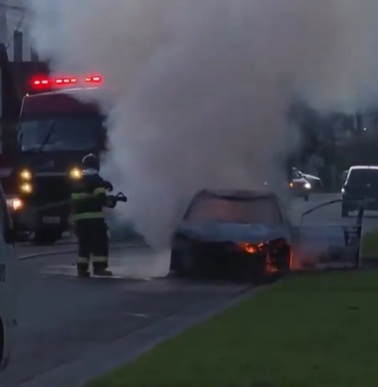 Incêndio destrói carro e mobiliza bombeiros em Praia Grande