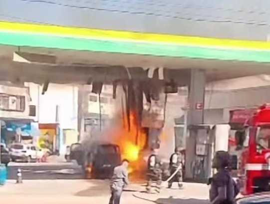 Segundo os bombeiros, as equipes atuaram no combate às chamas, que começaram logo após o veículo abastecer.