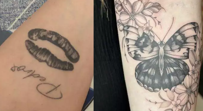 No local da tatuagem antiga, a jovem agora possui o desenho de uma borboleta e de flores.