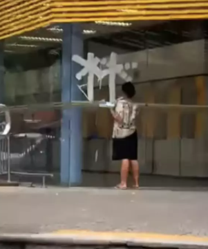Uma mulher foi flagrada pichando a fachada de um banco na cidade de São Vicente. O caso ocorreu em uma agência do Banco do Brasil, localizada na Rua Frei Gaspar, no centro, no último domingo (23).